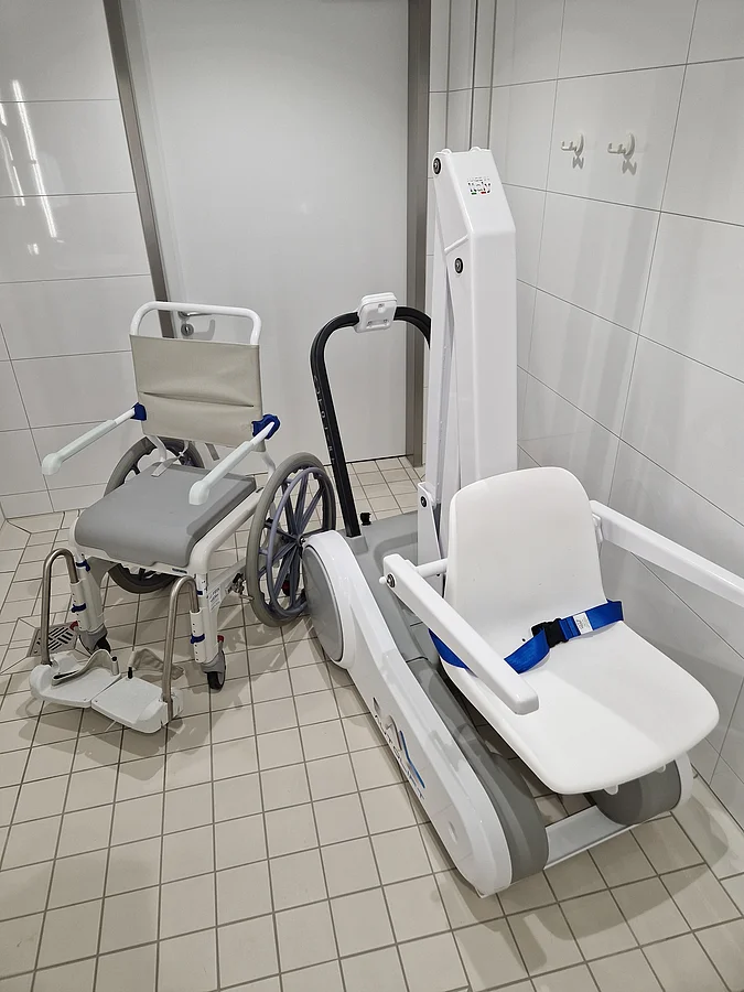 Der Zugang zum Jurabad Monheim ist barrierefrei. Der Einstieg in das 25 m Sportbecken ist mit Hilfe eines speziellen Pool Lifts mit Unterstützung durch das Bäderteam möglich.