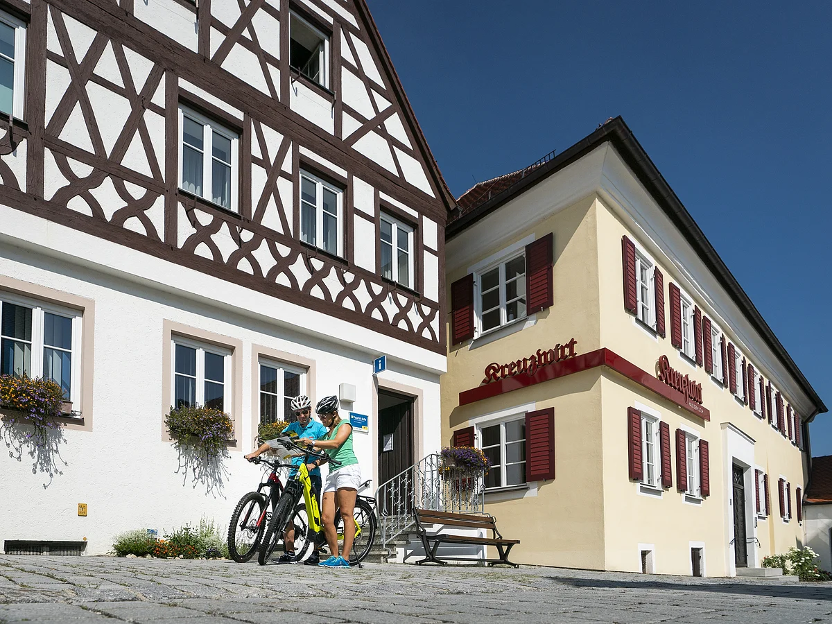 Außerdem befinden sich im Vorraum zwei große Prospektständer mit Infomaterial zu den Themen Radfahren, Wandern und Freizeit in den Urlaubsregionen Monheimer Alb, Ferienland DONAURIES, Geopark Ries und Naturpark Altmühltal.