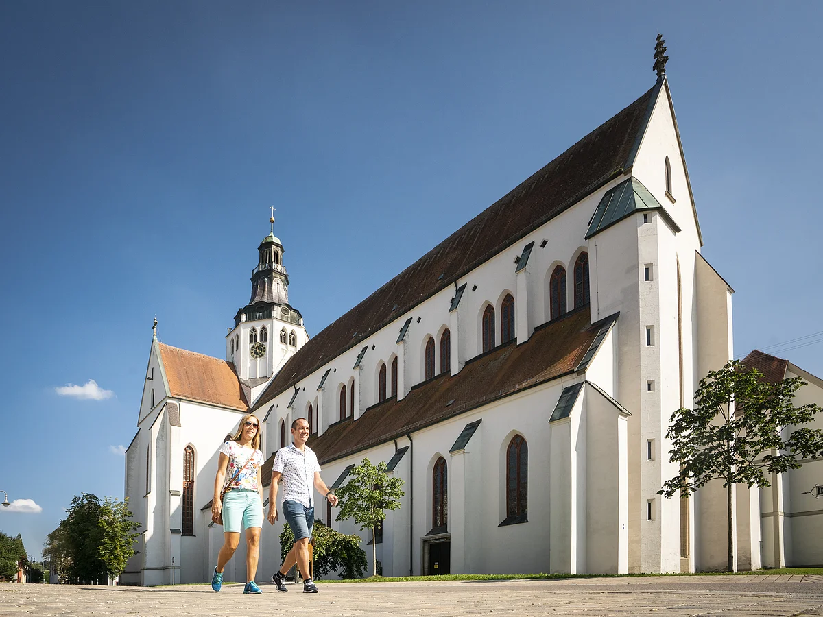Die ehem. Klosterkirche, eine mächtige, kreuzförmig angelegte, dreischiffige Basilika stellt architektonisch den „Inbegriff der Gotik in Bayerisch-Schwaben“ dar. Die Ausstattung wird jedoch heute im Wesentlichen vom Barock beherrscht.